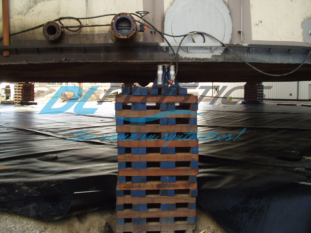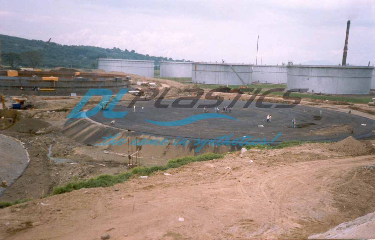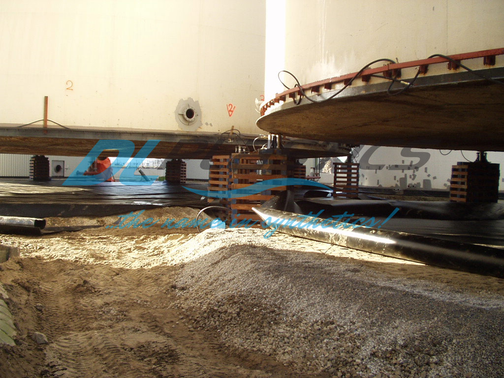 Voor diverse opdrachtgevers uit de olie- en petrochemische industrie levert en installeert DL PLASTICS B.V. op diverse locaties verspreid over de gehele wereld, kunststoffen voor vloeistofdichte onderafdichting t.b.v. opslagtanks, olietanks en tankparken. Standaard wordt door een crew van speciaal opgeleide kunststof verwerkers, een zeer hoogwaardige kwaliteit HDPE folie met een dikte van 2 mm of meer, op locatie uitgerold, gelast, getest op dichtheid en na goedkeuring uiteraard vloeistofdicht opgeleverd. Door in de folie een sump te lassen met een aangelaste controle drain is de bodem van de tank te controleren op dichtheid en kan milieuschade worden voorkomen. Wij leveren tevens een lek detectie put.