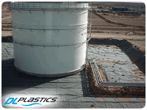 Olietankpark in Estland. De Lange monteurs hebben folie onder deze tank geplaatst.